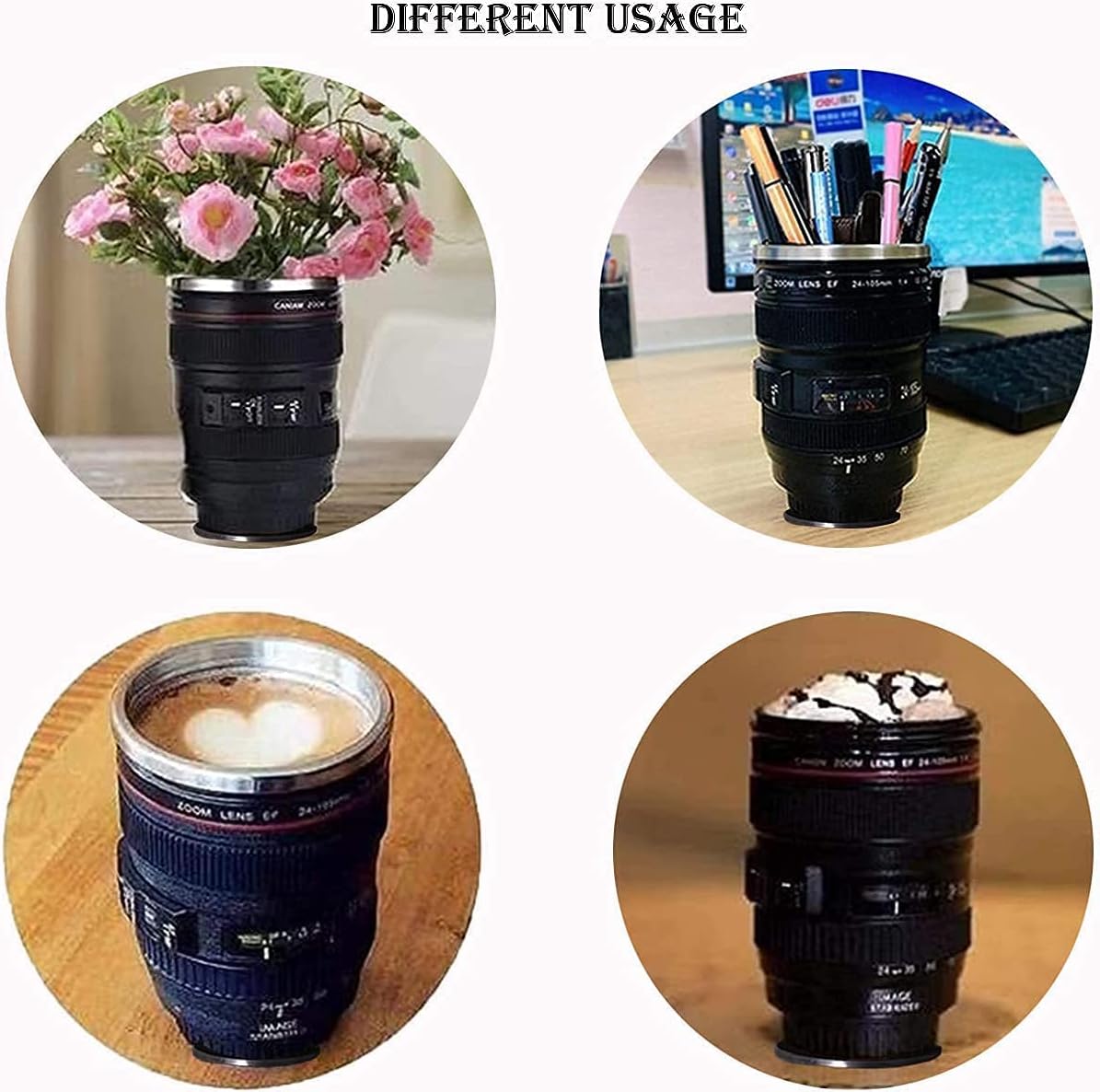 [The Latest Design] This lens coffee mug has a suction system to avoid falling and is made of food-grade ABS plastic materials and premium-quality stainless steel inside, making it safe to use for drinking